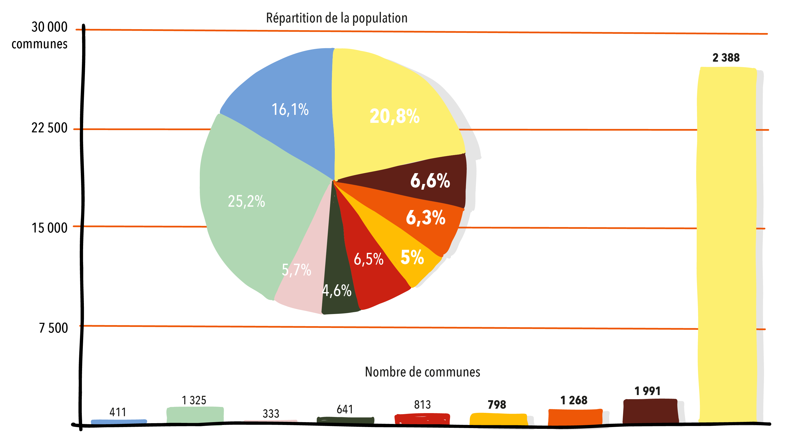population française répartie dans 31 445 communes (chiffres de 2017).